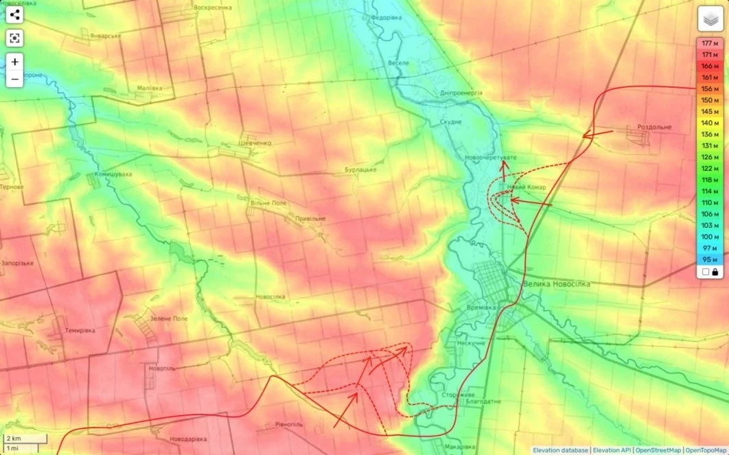 Дальше штурмовать через реку холмы пока не будет достигнут оперативный успех со стороны Ровнополя и трасса на Гуляйполе не будет физически перерезана задача «так себе».