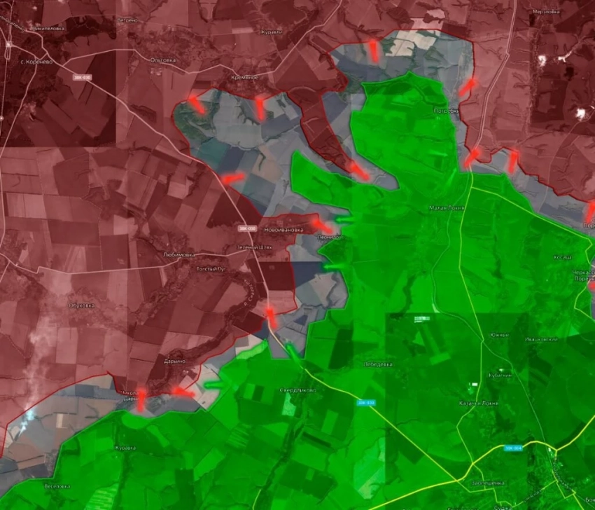 Деревня Кругленькое уже полностью под контролем российских войск. Наши штурмовики развивают успех, атакуя по балке в сторону Николаевки, которая дальше переходит в Малую Локню.