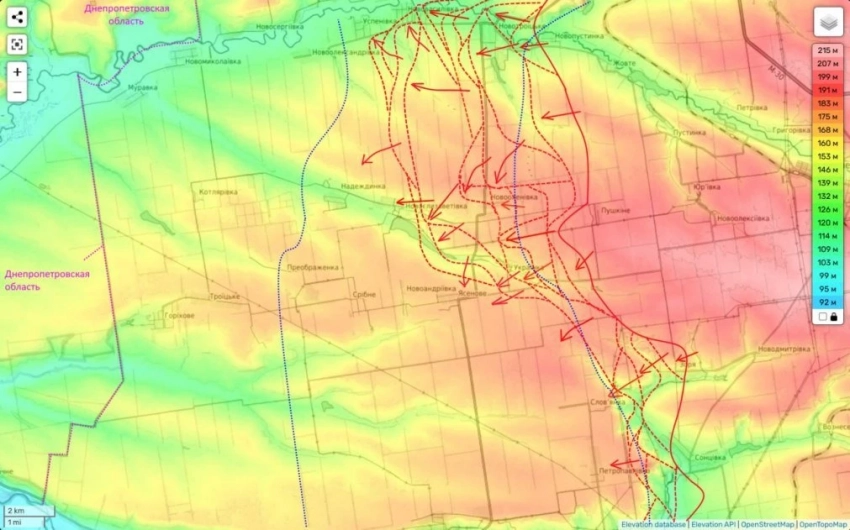 Именно здесь от наших передовых позиций осталось до Днепропетровщины уже менее 7 км.