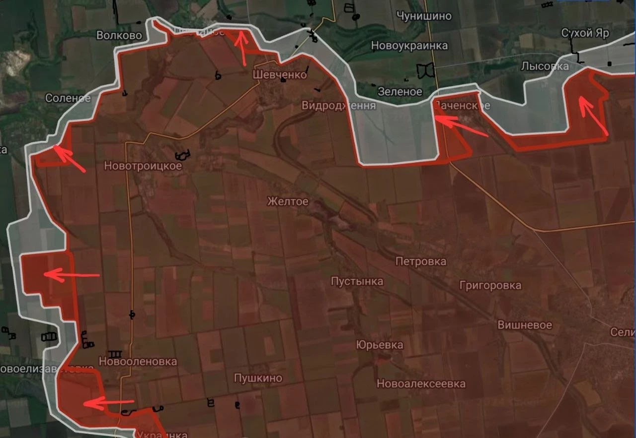 Покровское направление. Под контроль ВС РФ перешло Даченское. Южнее Покровска в междуречье рек Солёная и Волчья продолжаются встречные бои. ВС РФ расширили контроль территории в районе Новоелизаветовки, под контроль перешла Украинка, с опорой на которую давят в направлении с севера и востока на Ясеневое.