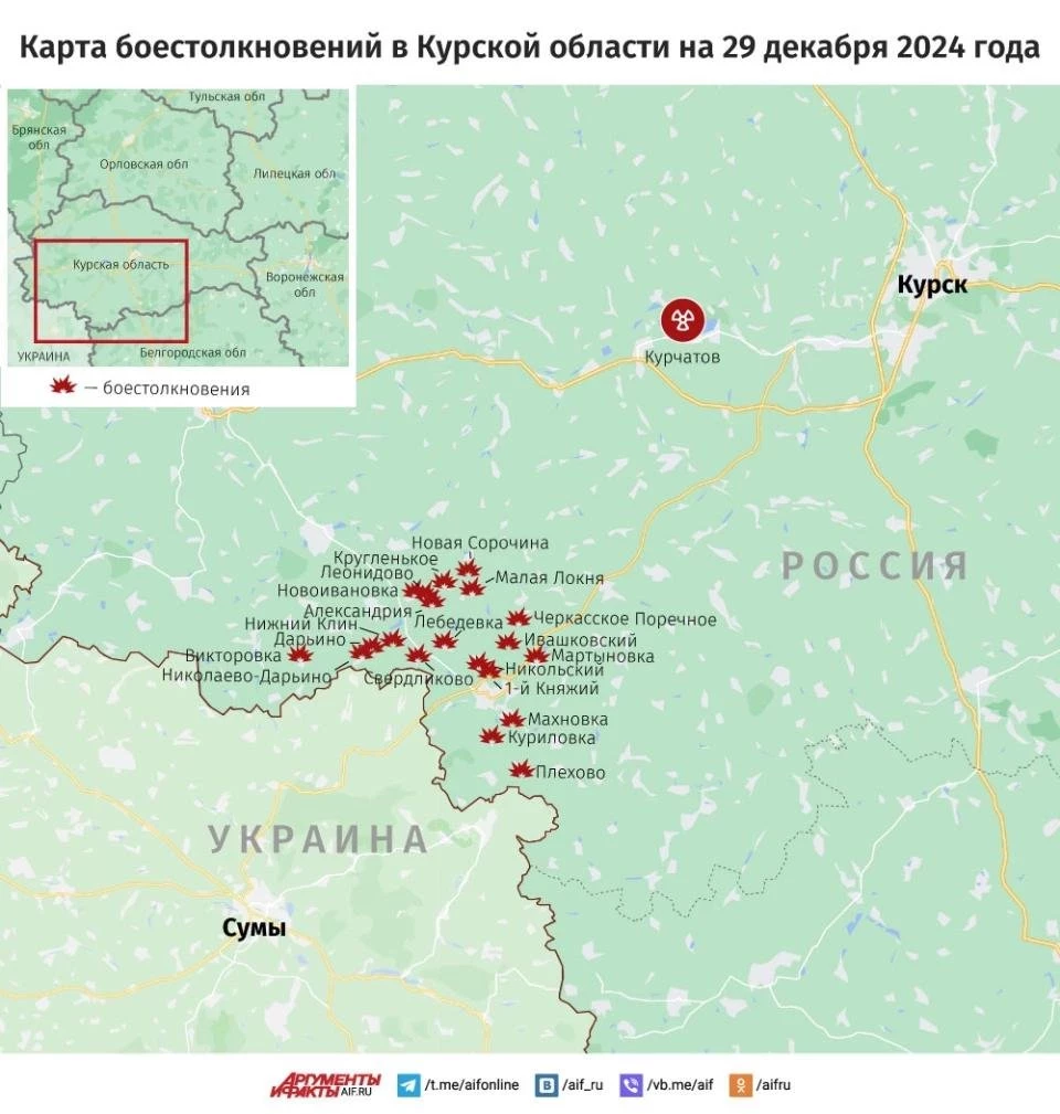 Новая карта боевых действий в Курской области. Данные на сегодня, 30.12.2024