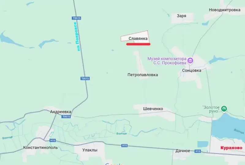 Ключевым объектом в районе Славянки можно считать автомобильную дорогу, соединяющую Покровск с селом Константинополь. Несколько участков этой дороги уже перешли под контроль ВС РФ. Теперь появляется возможность увеличить протяжённость участка контроля с последующим выходом к Константинополю с севера.