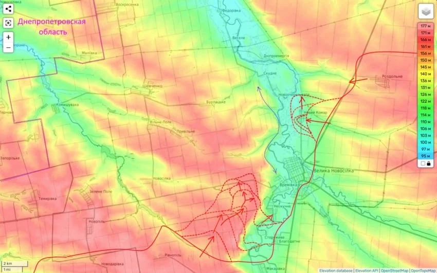 «Продолжаются работы по ослабление гарнизона противника за счет ударов по его выявленным опорным точкам и логистике. Которая с каждым днем становится для гарнизона ВСУ в Большой Новосёлке все хуже и хуже», - пишет Подоляка.