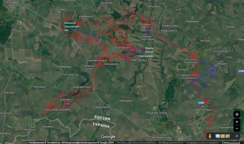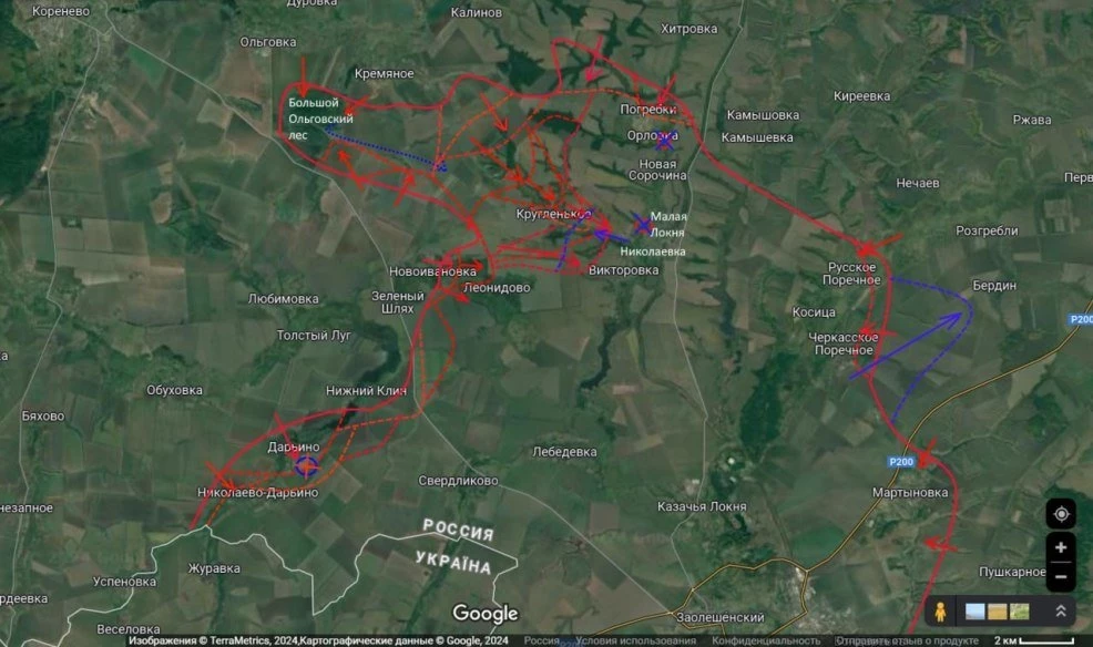 Идет выдвижение частей противника в район Дарьино и в сопредельной части Сумской области. А еще противник атакует в районе Леонидово на Новоивановку.