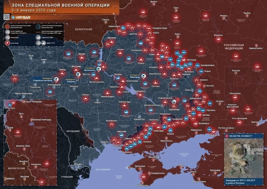 Новая карта боевых действий в зоне СВО на Украине от 7 января