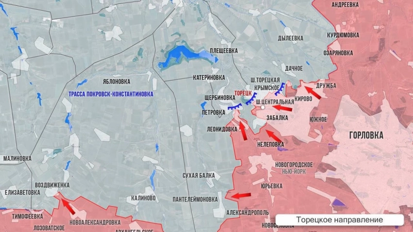 ▪️В Торецке ВС РФ выдавили ВСУ на северные окраины. На западе от города идут бои по линии Щербиновка-Новоспасское, на севере наши зачищают Дачное, атакуют по направлению к Дылеевке.