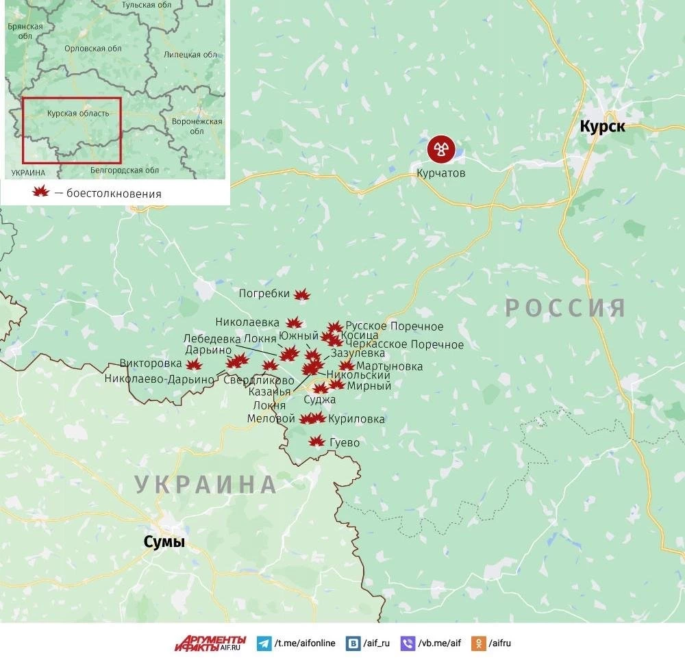 В приграничных районах Курской области продолжаются ожесточённые боевые действия. Бойцам Вооружённых сил Российской Федерации (ВС РФ) приходится в непростых климатических условиях выдавливать противника с территории страны, нанося ему непоправимый урон. Украинские же боевики только и делают, что цепляются за свои позиции в угоду политических целей, преследуемых киевским режимом. Свежие новости, а также новая карта боевых действий в Курской области - в материале N4k.