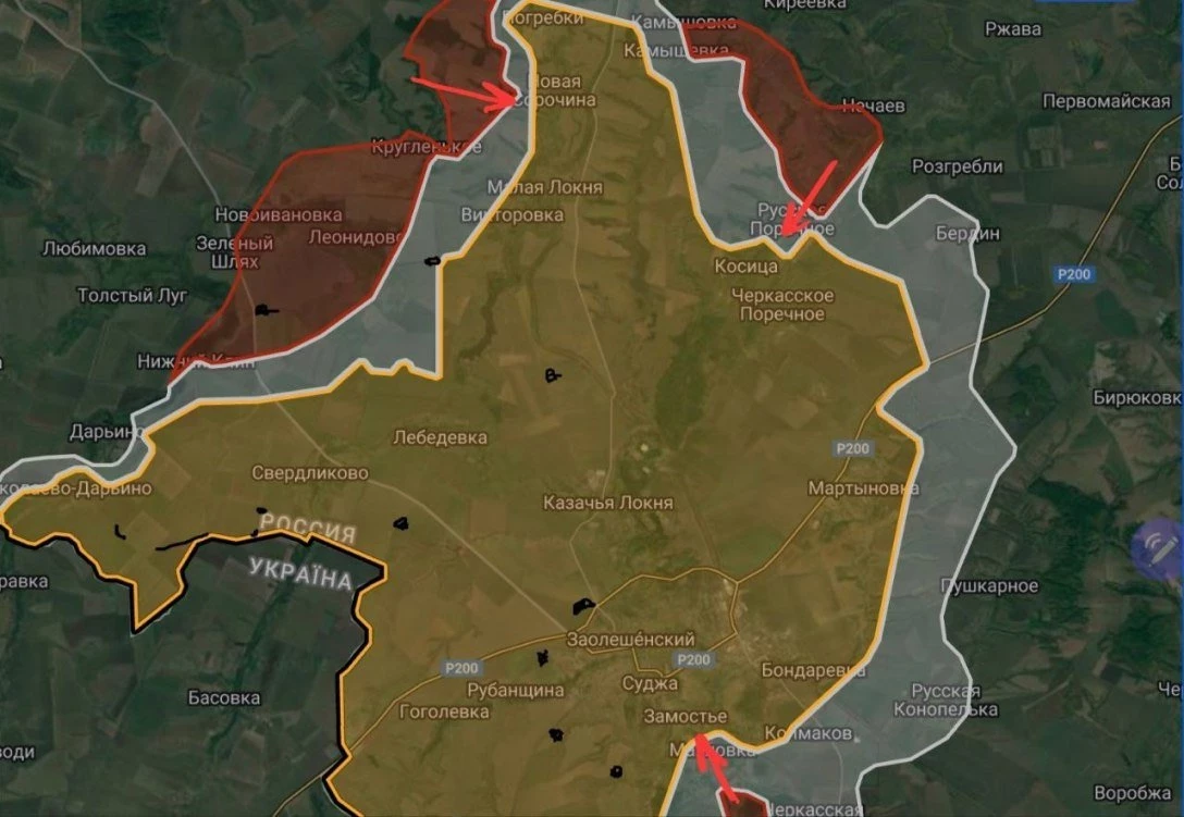 В районе Старой/Новой Cорочины продолжаются наступательные действия. До двух населенников остался 1 км. В Погребках все осталось без изменений. Важным участком обороны является линия вдоль ж/д полотна, по которой ВСУ выстраивают защиту.