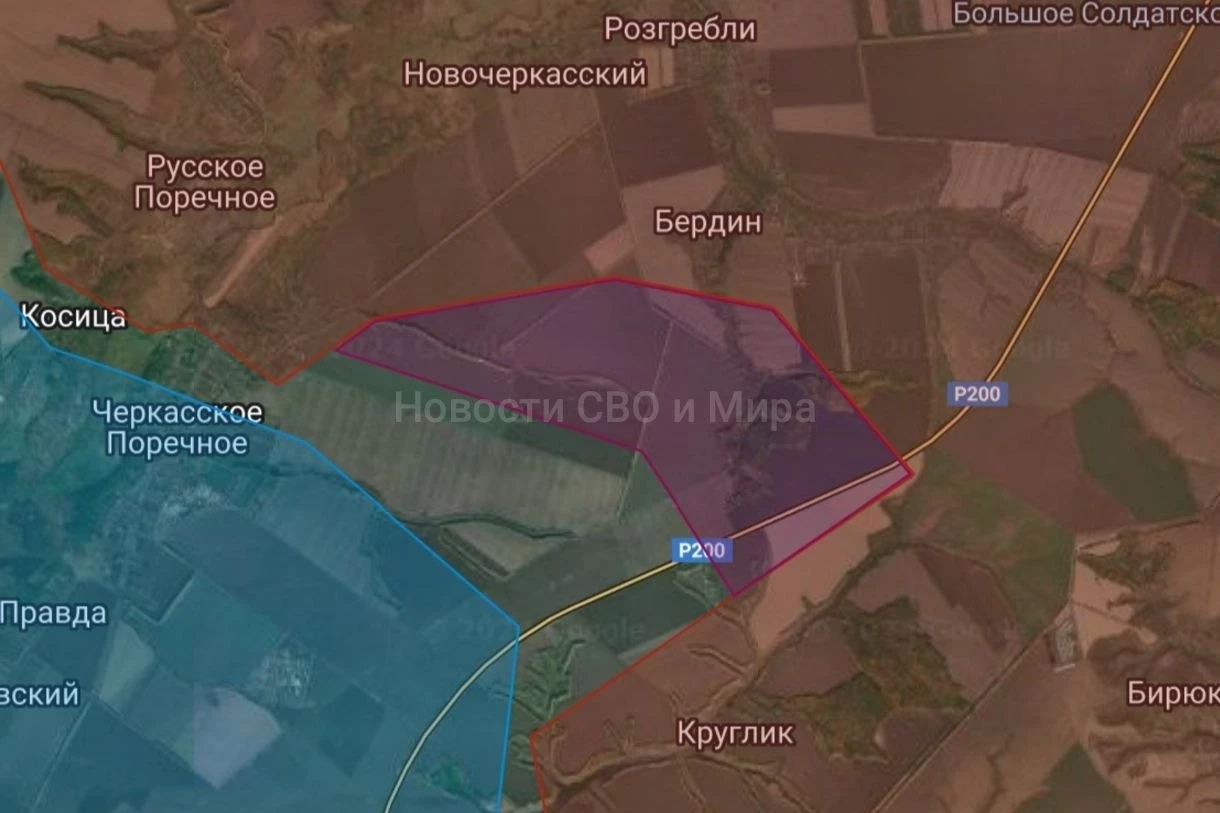 Он сообщил, что в воскресенье украинские военные предприняли попытку прорваться в Большое Солдатское, для чего высадили десант в посадке у хутора Бердин. Однако атака провалилась, и две колонны техники, которые направлялись к хутору, были уничтожены. Также были уничтожены две машины, которые пытались отступить.