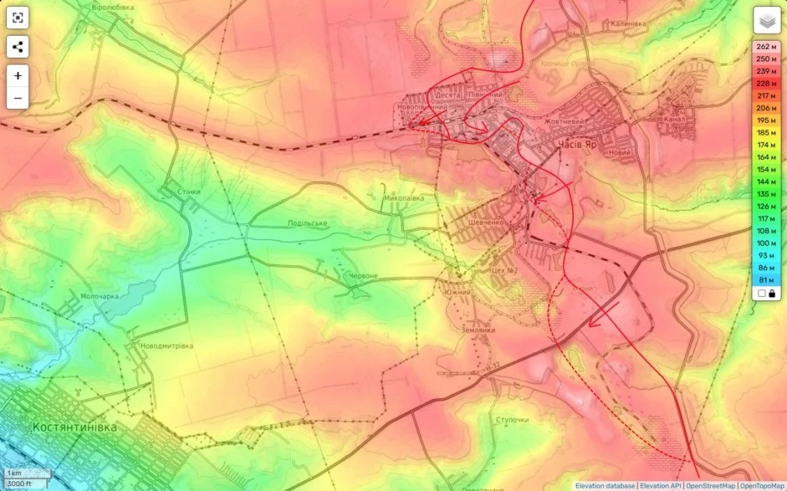 Также продолжаются бои и южнее города, в районе трассы на Константиновку.