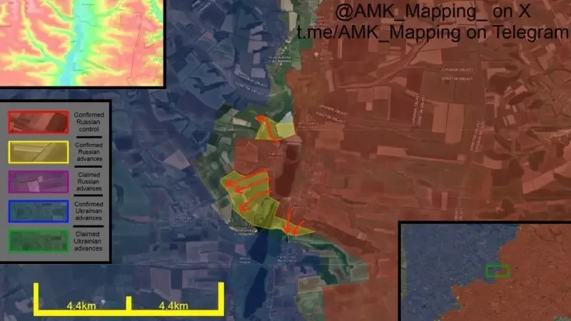 За прошедшие выходные подразделения ВС РФ продвинулись в направлении Лимана в ДНР, значительно расширив ранее созданный плацдарм на западном берегу реки Жеребец. Такие данные приводят западные военные аналитики. Они отмечают, что параллельно российские войска расширяют плацдарм на западном берегу реки Оскол.