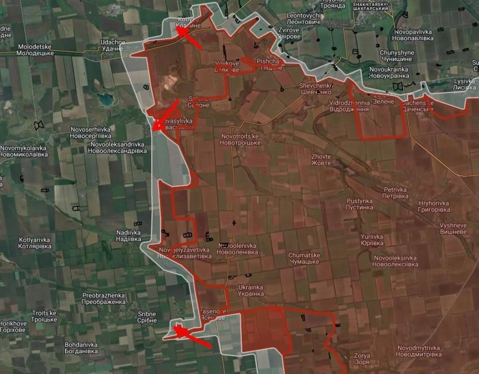 ВС РФ давят в направлении Дачное, продвинулись северо-западнее Янтарного, сообщает Telegram-канал "БелВПО".