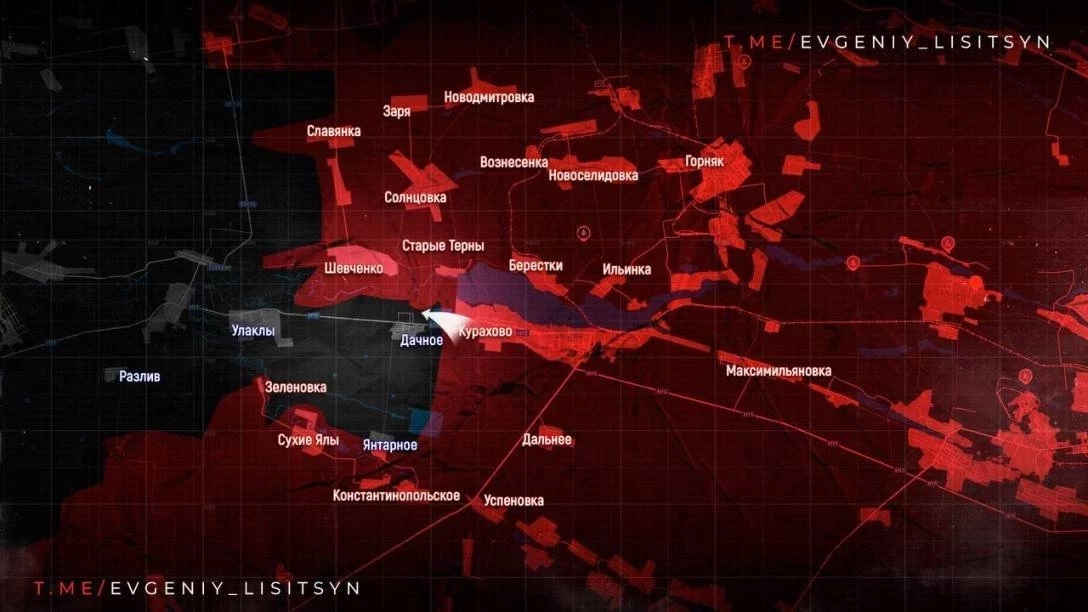На Покровском направлении восточнее Покровска продолжается продвижение наших войск в сторону дороги Покровск-Константиновка в районе развязки и н.п. Барановка. Юго-западнее Покровска ВС России продолжают действия по охвату города, наступая в районе Котлино, идут тяжёлые бои. Южнее наши войска ведут бои у Успеновки, двигаясь строго на запад в направлении Днепропетровской области. Также подразделения группировки войск «Центр» освободили населенный пункт Соленое.