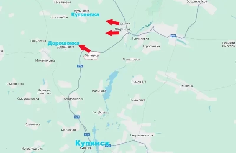 В результате успешных действий российские штурмовые подразделения двигаются в направлении сёл Дорошовка, а также в сторону реки Нижняя Двуречная, к селу Кутьковка Купянского района.