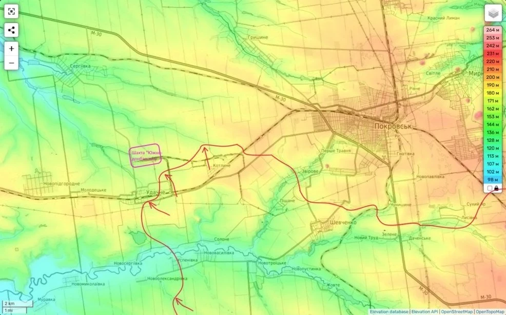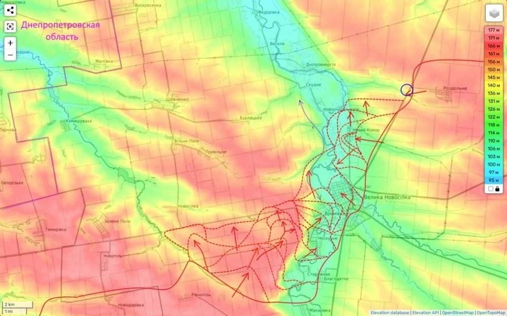 Однако ситуация ухудшилась для ВСУ не только в Андреевке, но и в Дачном к западу от Курахово, российские войска продолжают выбивать украинцев из села. В то же время началось продвижение ВС России и со стороны села Сухие Ялы.