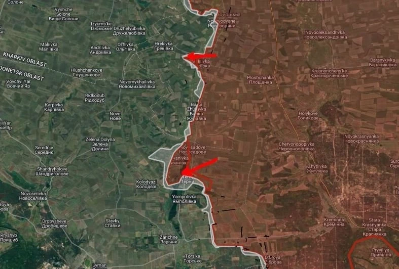На Купянско-Лиманском направлении ВС РФ ведут штурмовые действия на западной окраине Макеевки, западнее и юго-западнее Ивановки, в южной части Тернов и в Серебрянском лесу.
