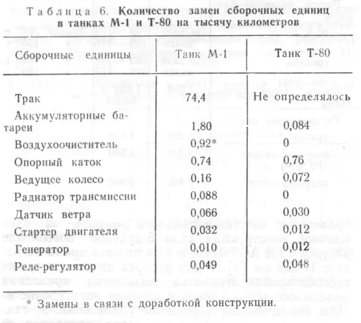 Вывод. Сравнение безотказности бронетанковой техники США и СССР, выполненное на основе результатов периодических испытаний и подконтрольной войсковой эксплуатации, с использованием принципа сопоставимости, показывает, что безотказность бронетранспортера М-113 и отечественной БМП-2 находится примерно на одном уровне. По безотказности американский танк М-60АЗ уступает отечественному Т-72. Безотказность танка Т-80 в целом примерно одинакова с американским М-1 при некотором превосходстве последнего в показателях ресурса газотурбинного двигателя и худших показателях ресурса ходовой части.