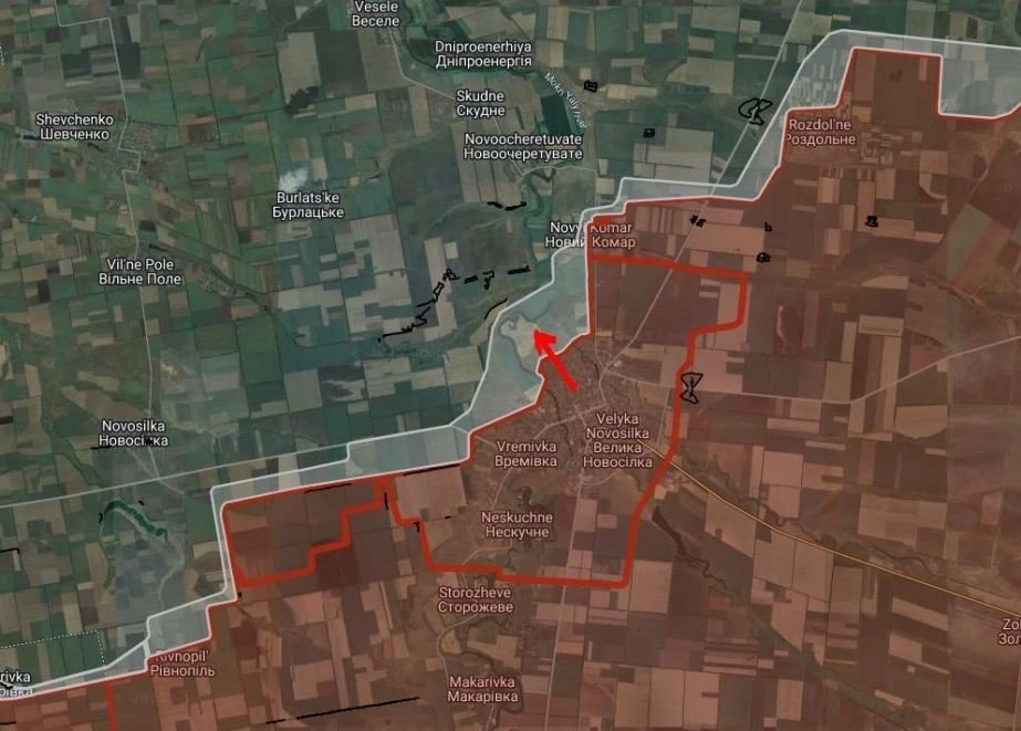 На Великоновосёлковском направлении продолжается зачистка территории на левом берегу р. Мокрые Ялы, северо-западнее Великой Новосёлки.