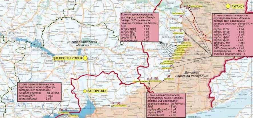 На Артемовском участке очень тяжелые бои вокруг Часов Яра. Наши штурмуют позиции ВСУ внутри мкр Канал, не менее жестокие бои в районе Красного (Ивановского) и Богдановки. Противник контратакует, пытаясь избежать клещей вокруг мкр Канал, откуда ВС России могут завершить фланговый охват всего города. Глобально линия фронта не изменилась, но тактические успехи у наших есть. Для развития стратегического успеха и перехода к следующим серьезным линиям обороны ВСУ нашей армии необходим Часов Яр с дальнейшим продвижением от Очеретино.
