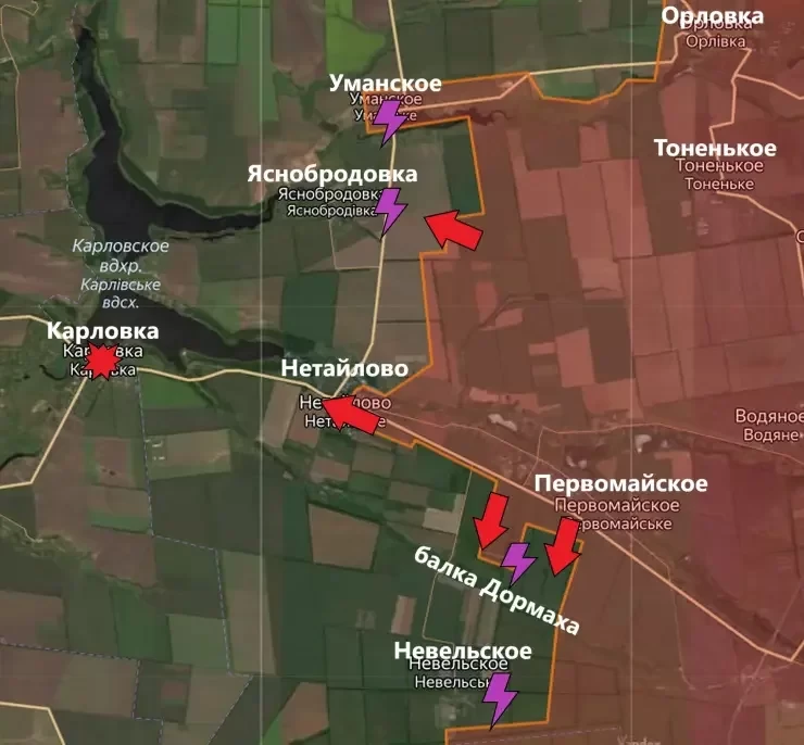 Сообщается, что солдаты ВСУ сейчас пытаются устроить оборону вблизи населенных пунктов Новоселовка Первая и Новопокровское, чтобы остановить наступление. Но российские военные продолжают продвигаться вперед.