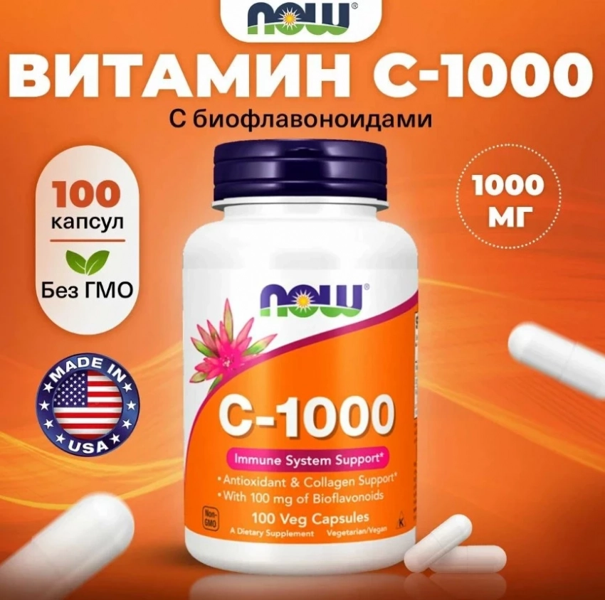 Витамин С от NOW — это мощная формула с цитрусовыми биофлавоноидами и рутином, созданная не просто для поддержки иммунитета, а для полноценной клеточной защиты и борьбы со старением. Эта добавка активирует выработку коллагена, ускоряет регенерацию тканей, нормализует обмен веществ и подавляет вред свободных радикалов. Неудивительно, что бренд NOW стабильно попадает в рейтинг американских производителей БАДов — качество, эффективность и честный состав говорят сами за себя.