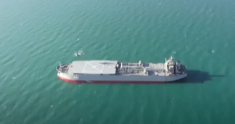 Как предполагается, внутренняя перестройка судна позволила разместить мастерские для технического обслуживания, помещения для личного состава, хранилища для топлива и боеприпасов, а также средства управления дронами.