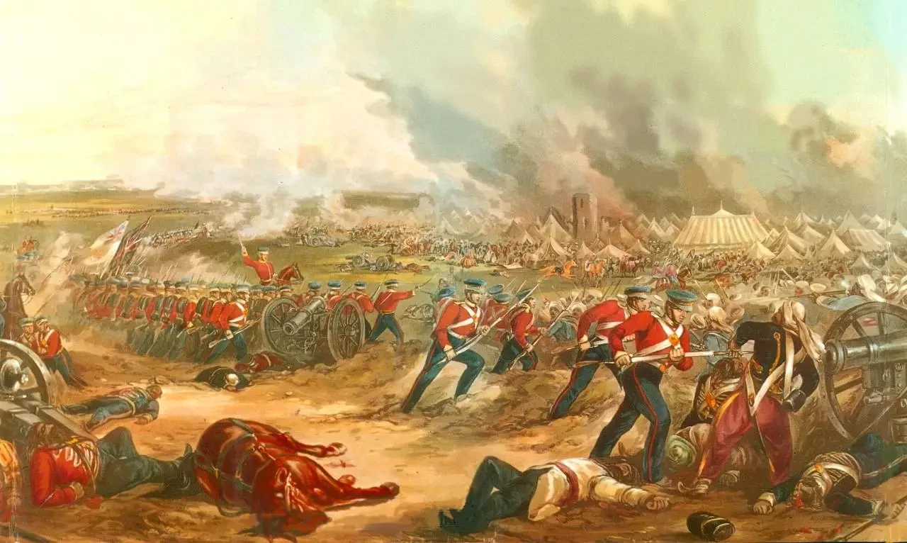 Сошлись в битве... Ну ладно, ладно. Хотя для сражения, в котором с одной стороны командует человек, ментально застрявший в Наполеоновских войнах, а с другой стороны — пара британских шпионов, название вполне подходящее. Англичанами командовал генерал-лейтенант сэр Хью Гоф, человек упрямый и лишённый воображения, уверенный, что штыковая атака — универсальный тактический приём, при помощи которого можно решить любую задачу. Войска под его командованием достигли деревни Мудки во второй половине дня. Армия ОИК реквизировала в деревне зерно и принялась готовить обед.