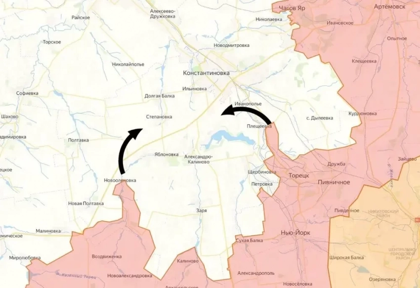 На Донбассе продолжаются ожесточенные бои. За последние несколько недель активных боевых действий российские войска потеснили украинские силы и существенно продвинулись на разных участках фронта на Константиновском направлении. Основной целью ВС РФ в данной местности является охват с запада и востока группировки ВСУ с последующим выходом к Клебан-Быкскому водохранилищу.