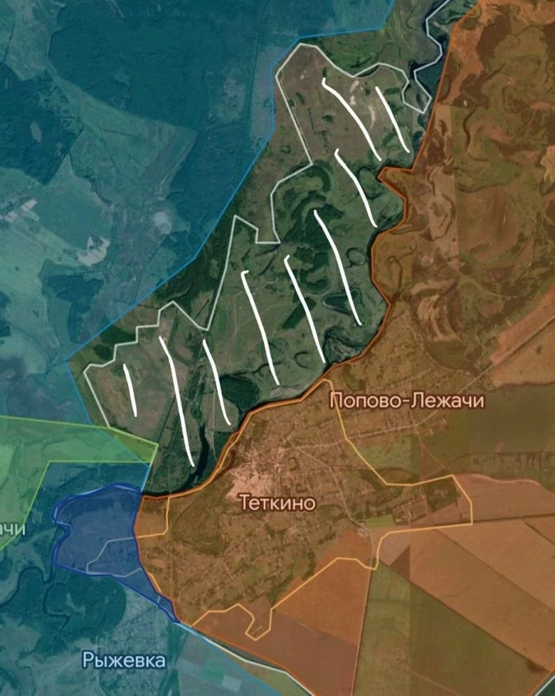 «Основная сложность обороны на данном участке заключается в уязвимости Теткино, которое расположено на выступе и окружено территорией Украины. Этот факт делает населенный пункт стратегически важным и уязвимым для атак, что, вероятно, стало причиной активных действий противника. Противник предпринимает активные попытки наступления с нескольких направлений: юго-запад от Теткино, в районе Рыжевки; юго-восток, в направлении Искрисковщины», - уточнили авторы канала.