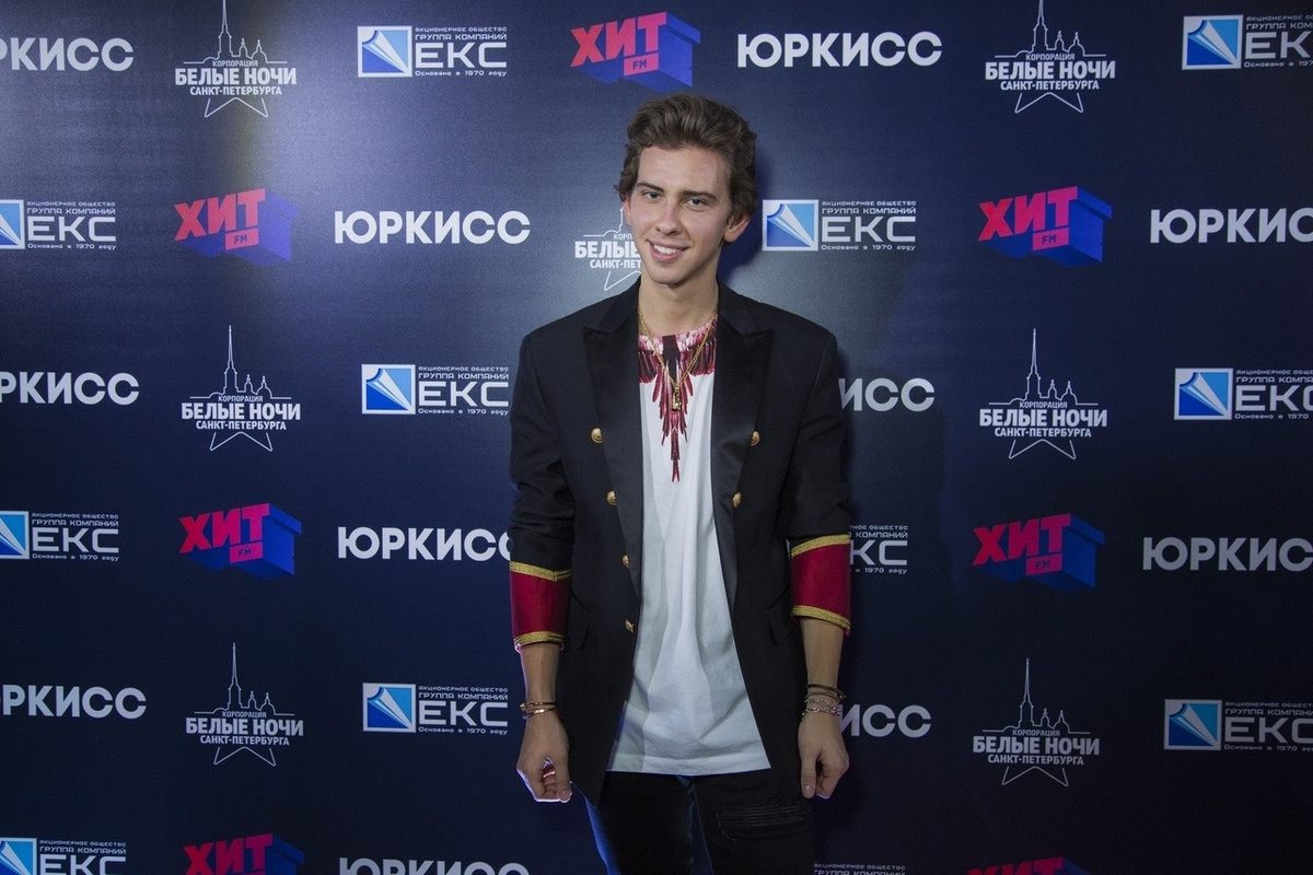 На красной дорожке Мия блистала в роскошном белом платье с открытыми плечами и разрезами на животе. Юрий выбрал рваные светлые джинсы и пиджак.