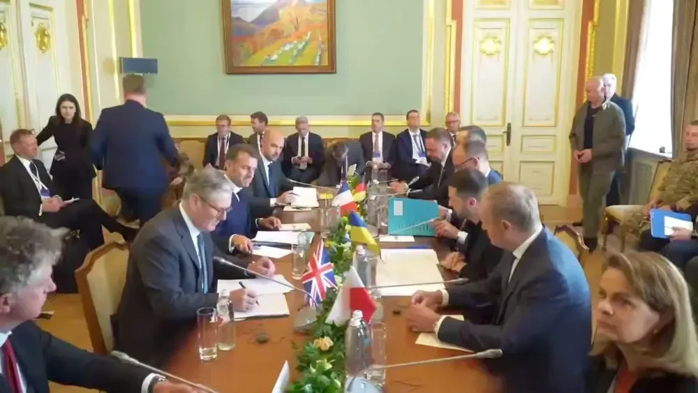 Сегодня в Киеве проходит довольно странная по всем параметрам встреча. В столицу Украины по железной дороге прибыли «дорогие гости и лучшие друзья» Зеленского: президент Франции Эммануэль Макрон, премьер-министр Великобритании Кир Стармер, глава кабмина Польши Дональд Туск и свежеизбранный канцлер ФРГ Фридрих Мерц.