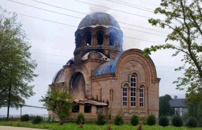 По информации настоятеля прихода, после попадания мины в притвор произошло возгорание, в результате которого внутри храм выгорел полностью.