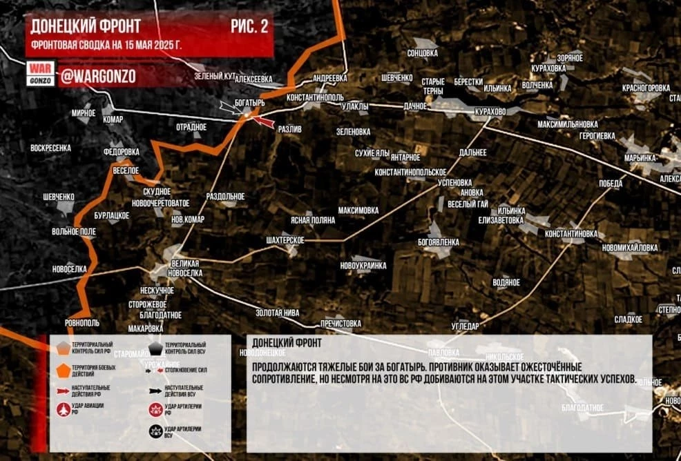 ВС РФ ведут ожесточённые бои за выход к Днепропетровской области: свежие данные на 15.05.2025