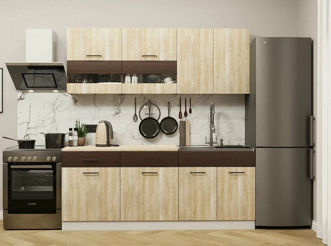 Кухонный гарнитур Босфор Белый/Дуб Венге/Дуб Сонома от Интерьер-Центр — удачный выбор для тех, кто ищет баланс между стилем и практичностью. Компактные размеры делают его идеальным решением для кухонь средней площади, а благородное сочетание цветов — Дуб Венге и Дуб Сонома — отлично вписывается в классические и современные интерьеры. Тем, кто задумывается, как подобрать цвет мебели для кухни, стоит обратить внимание именно на такие универсальные оттенки — они визуально расширяют пространство и сочетаются с любыми аксессуарами и техникой.