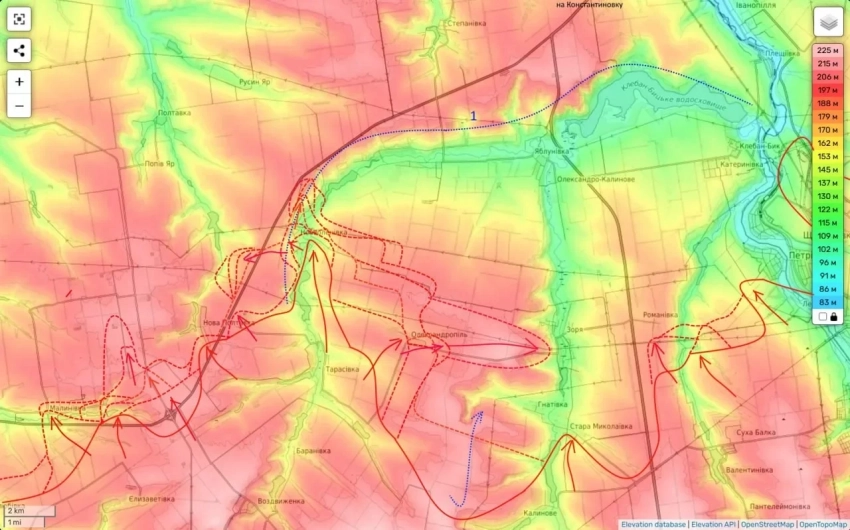В соседнем населённом пункте Алексеевка продолжаются ожесточённые бои. Российские войска развивают наступление в направлении сёл Отрадное и Комар, создавая угрозу для украинских позиций.
