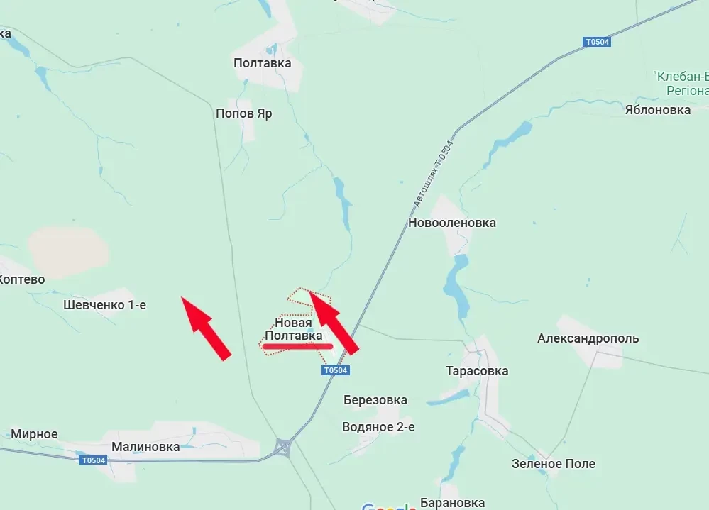 Одновременно Вооружённые силы России перевели под свой контроль около 4 квадратных километров территории к западу от Новой Полтавки, что позволило подойти к селу Шевченко 1-е. От этого села примерно 14 км до ближайшей точки автомобильной дороги Т0515 Доброполье-Покровск. Если эта дорога будет взята под плотный огневой контроль, то противник лишится ещё одного крупного маршрута снабжения в Покровске и Мирнограде. Это так называемый северный маршрут, который связывает Покровск (Красноармейск) с Краматорском и Славянском.
