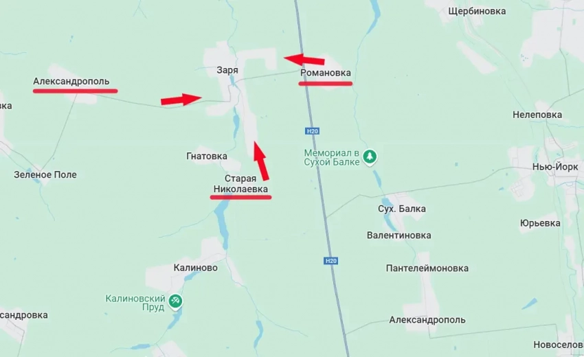 С освобождением Романовки положение ВСУ в селе Заря превращается из сложного в критическое. Наши войска сжимают клещи вокруг этого достаточно крупного села, наступая как стороны Романовки, так и с юга – от Старой Николаевки, и с запада – от Александрополя.
