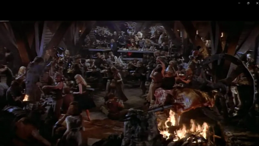 В фильмах изображается пир викингов, как безумная вакханалия. Фильм «Корабли викингов». 1963.