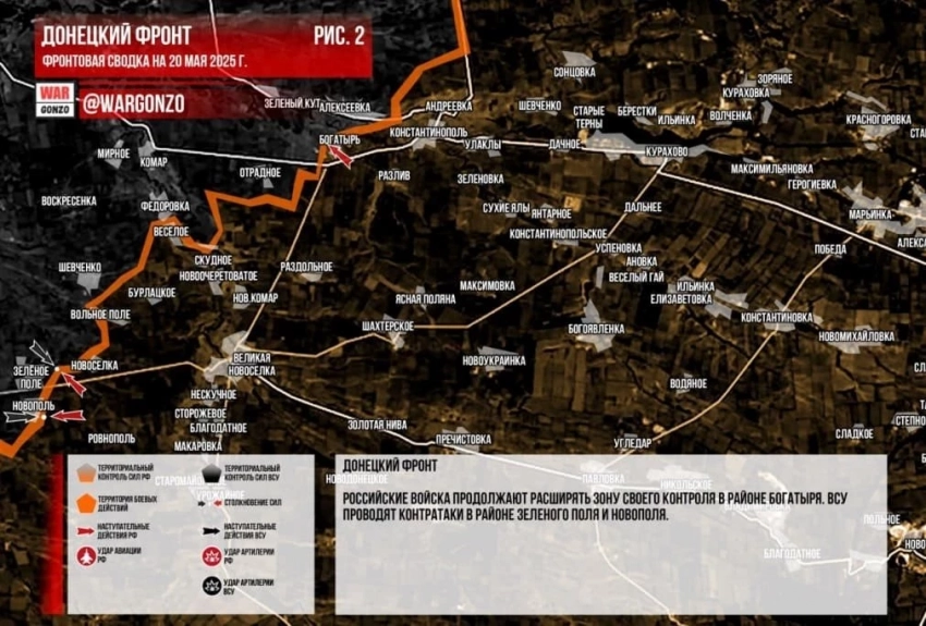 ВС РФ ведут ожесточённые бои в районе Новополе и Зелёное поле на Южно-Донецком направлении: свежие данные на 20.05.2025