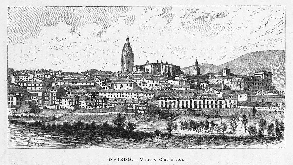 Овьедо на гравюре Хосе Ме Квадрадо, 1885 г.