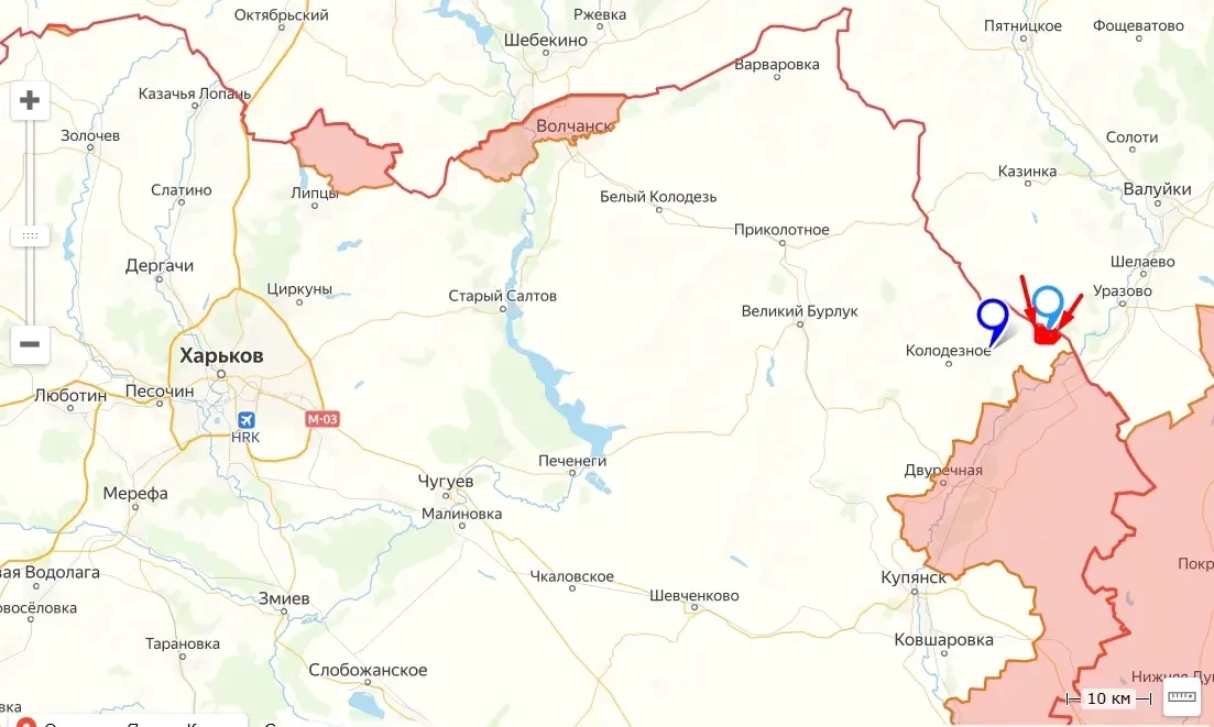 Согласно сообщению от ряда отечественных околовоенных ТГ-каналов, штурмовые подразделения ВС РФ пересекли государственную границу между Белгородской и Харьковской областью и взяли под контроль село Строевка в Двуреченском районе.