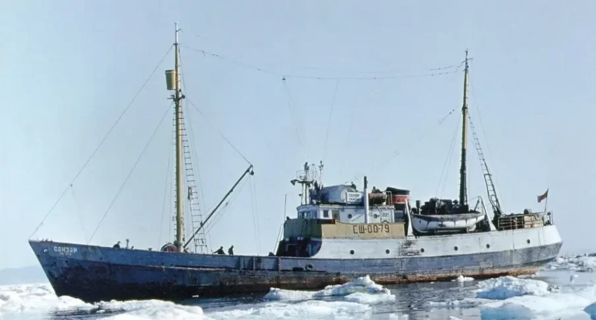 Во флотилии их было десять. Вышли мы в апреле, зашли в Холмск, получили снабжение, оружие, патроны и пошли Лаперузом в Охотское море бить зверя: лахтак, ларга, акиба. На шхуне было пять фангсботов, по три человека промысловиков, остальные работали на борту. Каждые два часа боты выходили на связь, докладывали обстановку, связь держали по портативной радиостанции «Недра-П». Хорошая была радиостанция, частота 1740 Кгц. При хорошем прохождении связывались с другими шхунами за 200-300 миль.