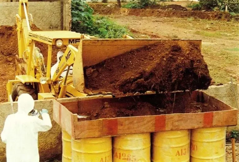 Для хранения радиоактивных отходов, образовавшихся в результате дезактивации местности и лечения людей, было выбрано глухое место в 20 километрах от Гоянии. Отходы были классифицированы как нерадиоактивные, низкоактивные и среднеактивные. Нерадиоактивные и низкоактивные отходы отгружались в металлические бочки ёмкостью 40, 100 и 200 литров, а также в металлические ящики вместимостью до 5 тонн.