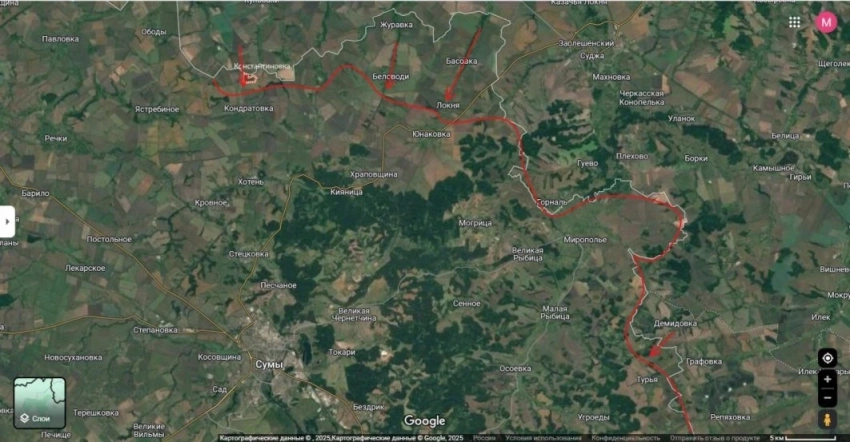 В Минобороны подтвердили информацию об освобождении населённого пункта Константиновка в Сумской области. Подоляка отметил, что налицо - расширение фронта российского наступления севернее Сум и начало движения к населенному пункту Хотень.