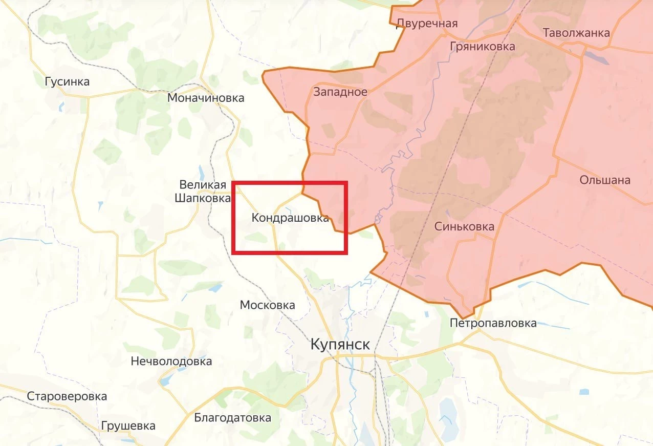 С Купянского направления пришли хорошие новости - официально подтверждено освобождение Кондрашовки. Это стратегически важно: контроль над этим пунктом позволяет перерезать две дороги на Великий Бурлук. А после взятия Тищенковки до железной дороги, ведущей в том же направлении, останется меньше двух километров, сообщает военкор Евгений Лисицын в своём Telegram-канале.