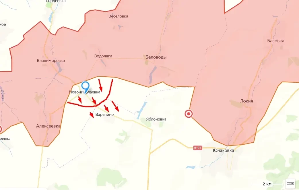 Западный OSINT-ресурс сообщает, что ВС РФ взяли под контроль Новониколаевку в Сумской области и зашли в соседнее село Варачино