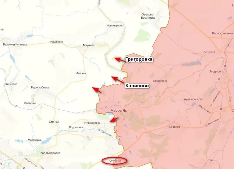 Есть продвижение и в самом Часовом Яре, относится это к северным окраинам города и центру. А в Ступочках, которые, по данным российских ресурсов, перешли под контроль ВС РФ, идет планомерная зачистка как самого населенного пункта, так и прилегающих территорий. Основные силы украинской армии отошли в сторону Константиновки.