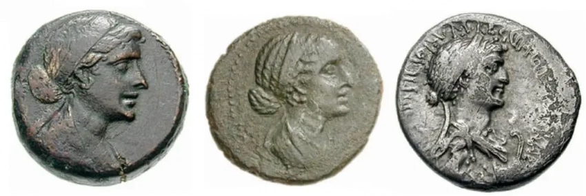 Монеты, отчеканенные при её жизни, также не спешат подтверждать легенду о несравненной красоте. На них мы видим профиль с характерным птолемеевским крючковатым носом, выступающим подбородком и довольно строгим выражением лица. Конечно, следует учитывать, что античные портреты, особенно на монетах, часто бывали стилизованы и служили целям пропаганды, подчёркивая династическую преемственность или божественное покровительство, а не стремились к точному сходству. Изображения правителей нередко идеализировались или, напротив, наделялись чертами, символизирующими определённые качества, например, мужественность или силу.