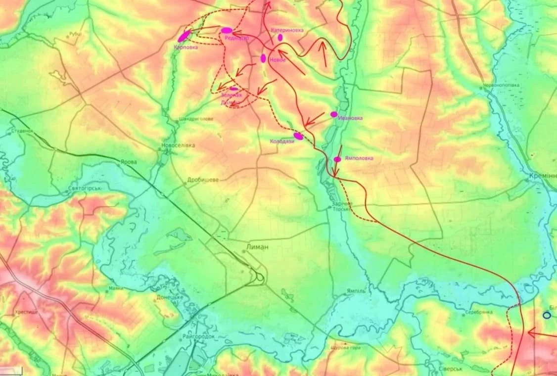 На Лиманском направлении продолжаются упорные бои за Зелёную Долину, а также в районе Карповки, где российские войска продолжают прорывать оборону противника по рассечению группировки ВСУ на восточном берегу реки Оскол на Боровскую и Лиманскую.