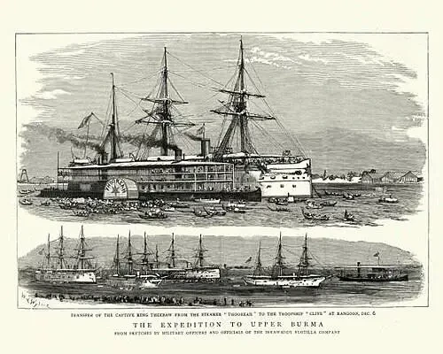 В общем, случился дипломатический скандал, англичане заставили Францию отозвать Хааса (после поражения во франко-прусской войне французы стали сильно сговорчивей, лет за двадцать до того могли и послать куда подальше). В Уайт-Холле стало ясно — с Бирмой надо что-то решать! И тогда 22 октября 1885 года британцы выкатили Тибо Мину ультиматум — принять нового британского резидента в Мандалае с собственным военным кораблём и 1000 солдат охраны, а любые судебные иски и штрафы отложить до его прибытия. И вообще, чтобы все внешние сношения «империя» (кавычки в данном случае уже будут к месту) вела только через Великобританию. Ну и режим особого благоприятствования в торговле с Китаем островитяне добавить в ультиматум не забыли — торговая нация как-никак...